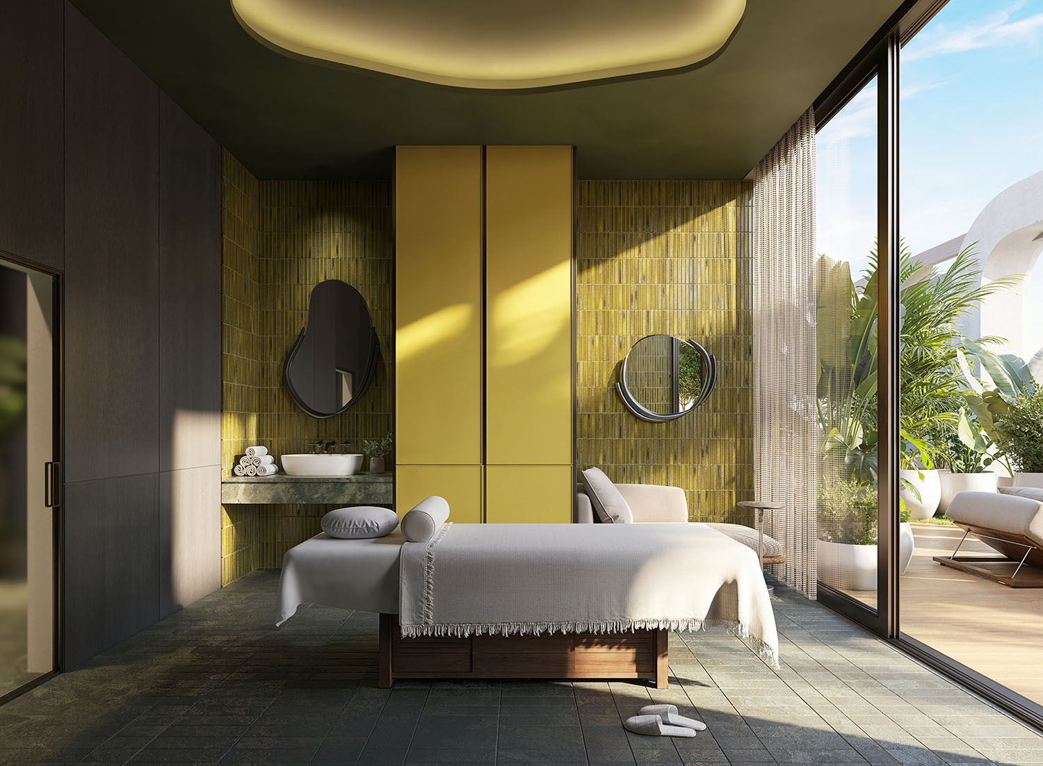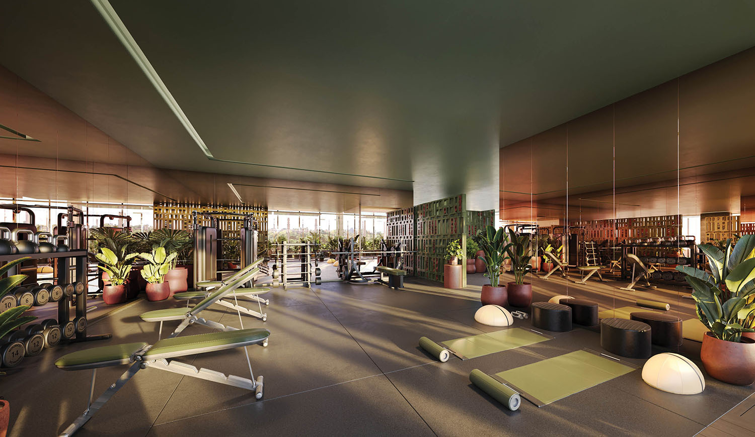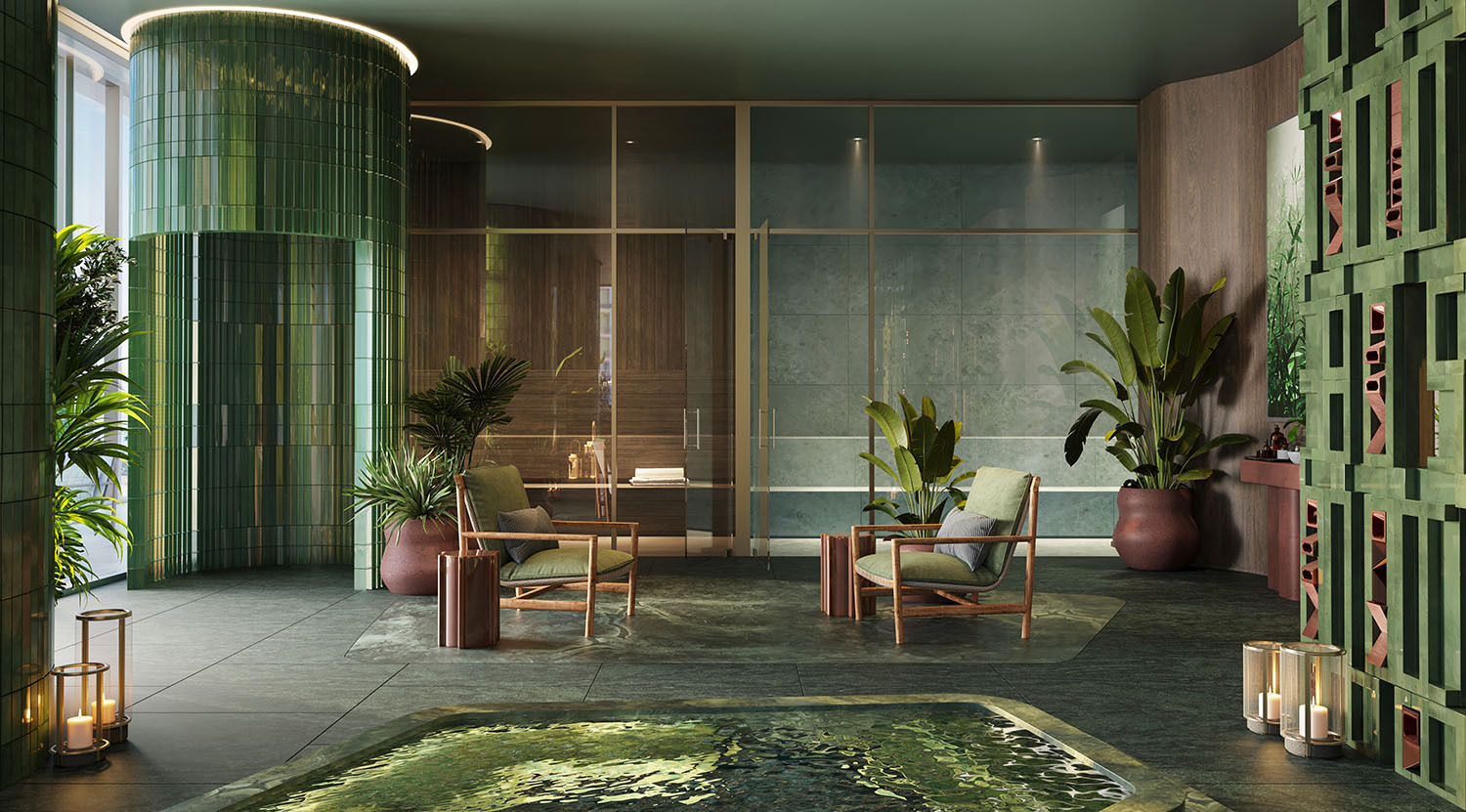 • Dedicated spa zone featuring infrared sauna, steam room, hot and cold plunge pools, healing garden, and tranquil treatment rooms.