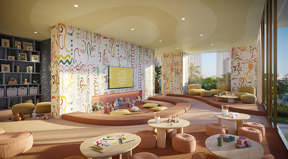 • Resort-style 8th-floor pool deck with main pool, kids’ pool, private cabanas, gardens, outdoor theatre, game rooms, and golf simulator.
